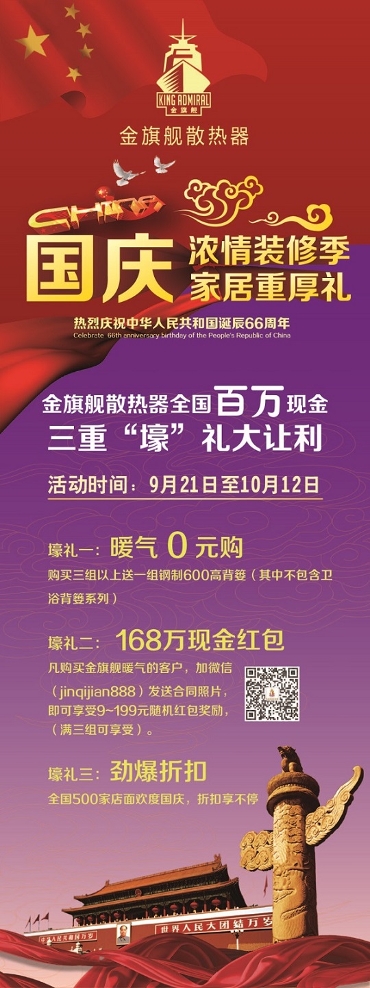 壕礼三:凡购买金旗舰暖气的客户,加微信( jinqijian888 )发送合同照片,即可享受9~199元随机红包奖励。
