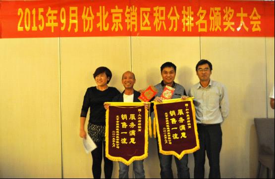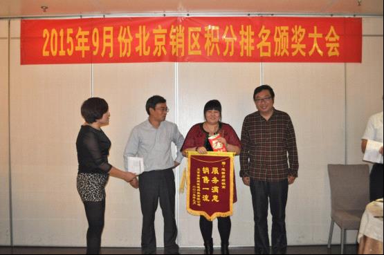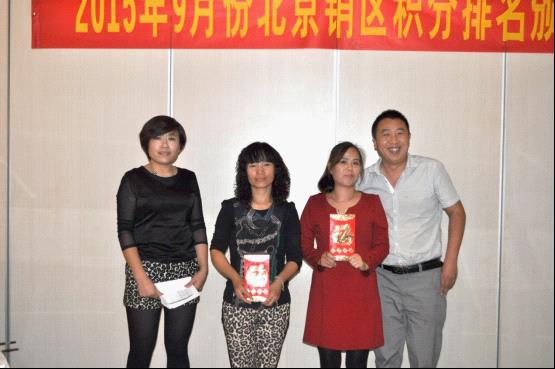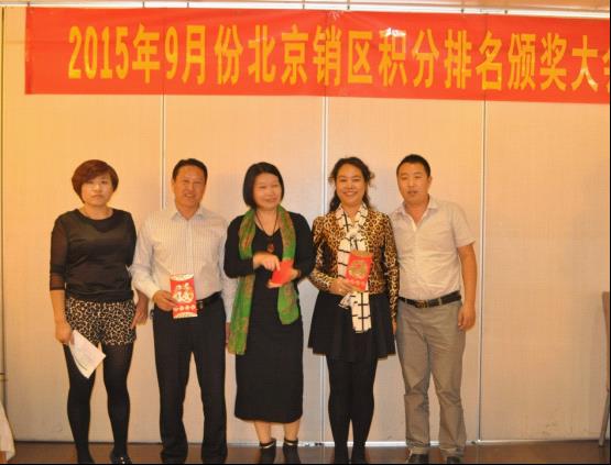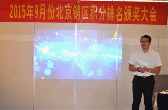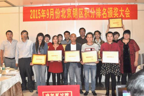 会议的第二阶段,大会隆重举行了2015年度9月份北京区积分排名颁奖仪式,将大会氛围推向最高潮,获奖的朋友们喜不自胜,在现场热烈的掌声中分享获奖感言以及优秀的经营理念。未获奖的朋友纷纷表示,将积极进取做好北京区市场销售,下次走上领奖台。